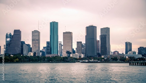 © Kitta Studio, Fototapeta premium Houston skyline view from water at dusk with cloudy sky