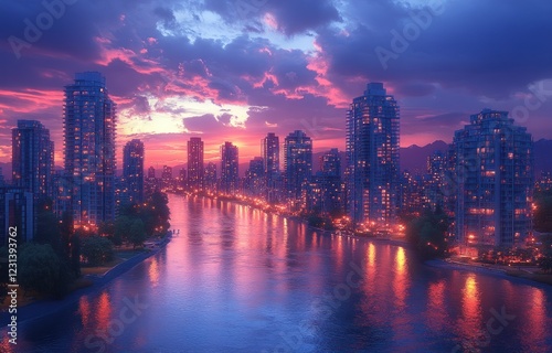 © kong, Fototapeta premium Houston Texas Downtown Aerial Drone Sunset Cityscape Skyline