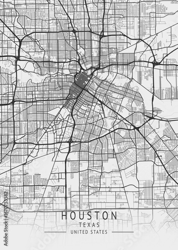 © Tien Stencil, Fototapeta premium Houston - Texas - US Gray Map Art
