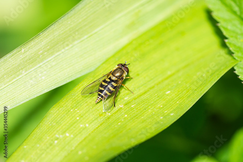© Erik, Fototapeta premium Hoverfly on Leaf in Springtime