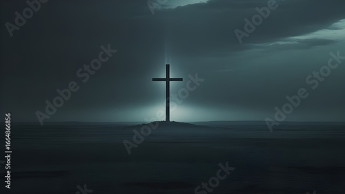 Naklejka premium How a cross that gives light shines in a dark land, Jesus is the light, Jesus...