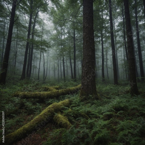 © Eman, Fototapeta premium How does the sound of the wind rustling through the trees make you feel when you’re alone in the forest?