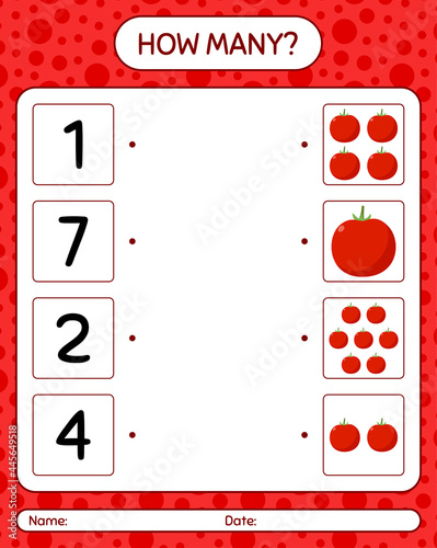 Naklejka premium How many counting game with tomato. worksheet for preschool kids, kids activity sheet, printable worksheet