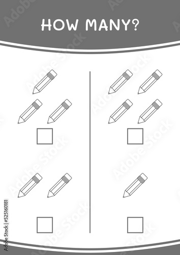 Obraz premium How many of Pencil, game for children. Vector illustration, printable worksheet