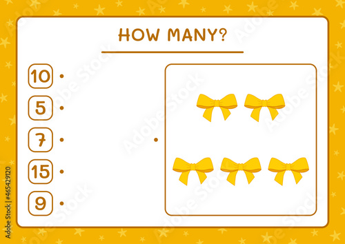 Naklejka premium How many ribbon, game for children. Vector illustration, printable worksheet
