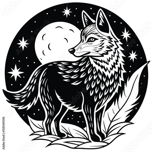 © EPS, Fototapeta premium Howling Wolf Underneath an Ethereal Full Moon in a Night Forest
