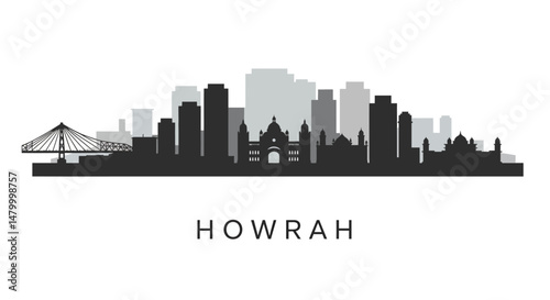 Naklejka premium Howrah skyline with cityscape vector, black, and white.
