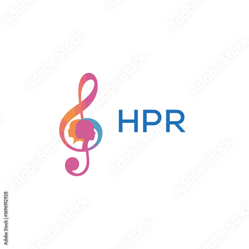 Obraz premium HPR “Colorful music logo with human faces and treble clef design” HPR Later Logo, “Creative music academy logo with silhouette heads and notes”HPR music, logo, HPR abstract, creative, HPR colorful,