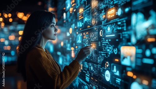 © sarinrat, Fototapeta premium HR specialist analyzing a virtual workforce grid