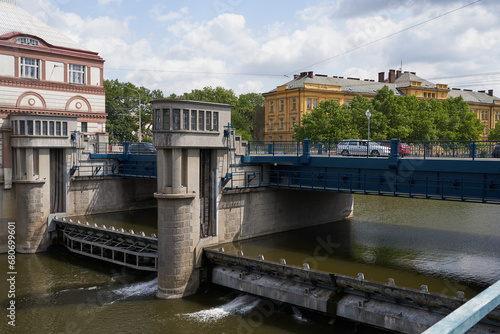 Fototapeta premium Hradec Kralove, Czech Republic - July 22, 2023 - the Moravian weir with...