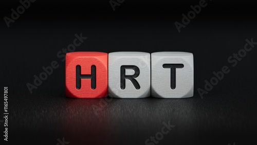 © feng, Obraz premium HRT the word is written on wooden cubes.close up of wooden elements,Business Concept.3D rendering on black background.