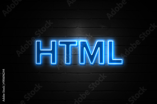 Obraz premium Html neon Sign on brickwall