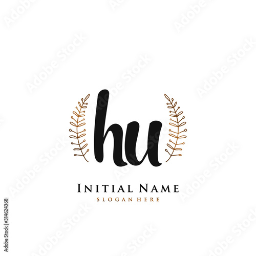 Obraz premium HU Initial handwriting logo vector