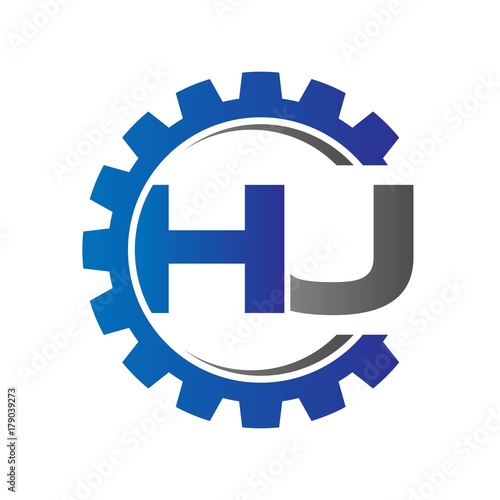 © triwaw, Fototapeta premium hu initial logo vector with gear blue gray