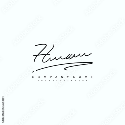 © VOKE VICTORI, Obraz premium HU initials signature logo. Handwriting logo vector templates. Hand drawn Calligraphy lettering Vector illustration.
