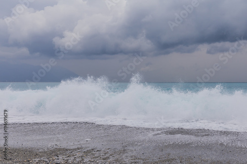 Fototapeta premium Hualien County/taiwan -december 13, 2017 : Chihsing Beach, A gravel beach