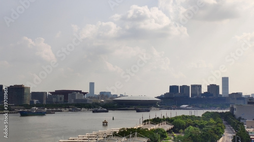 © Pavlo, Fototapeta premium Huangpu River near Mercedes-Benz Arena (Shanghai). Houses and skyscrapers. China. Asia