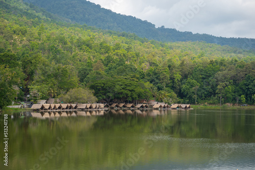 Fototapeta premium Huay Tueng Tao Park is a public place for people to relax and a tourist attraction for rafts selling food by the water and a variety of outdoor activities in Chiang Mai, Thailand.