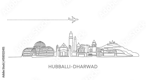 Fototapeta premium HubballiDharwad Skyline with India, Line Art, and Airplane.
