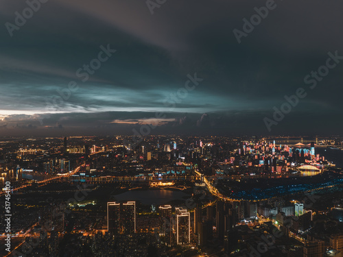 © Hao, Obraz premium Hubei Wuhan Summer Urban Night Skyline Aerial photography scenery