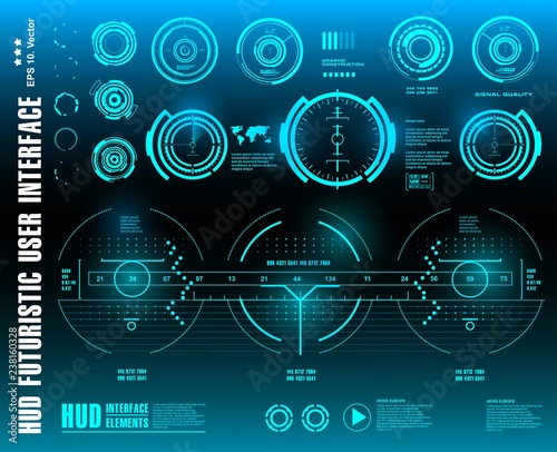 Obraz premium HUD futuristic blue user interface, dashboard display virtual reality...