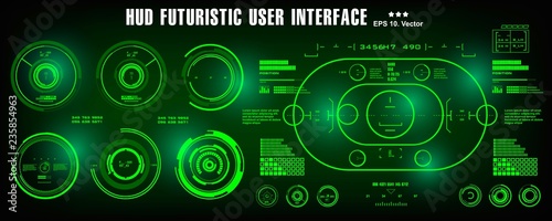 Obraz premium HUD futuristic green user interface, dashboard display virtual reality technology screen, target