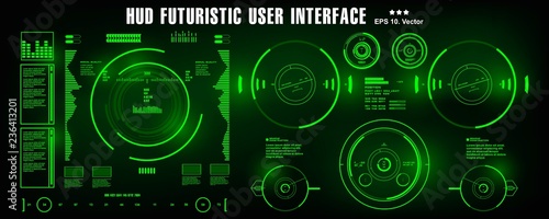 Obraz premium HUD futuristic green user interface, dashboard display virtual reality...