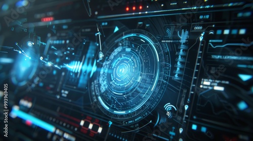 Fototapeta premium HUD Interface Element for Voice Recording and Audio Analysis in Blue