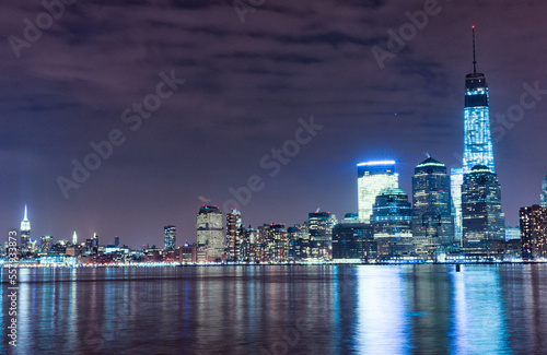 © Mindaugas Dulinskas, Fototapeta premium Hudson River and Night Cityscape of New York. Manhattan. NYC, USA. Reflection on Water