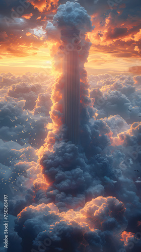 Fototapeta premium huge Athen column breaking through the cloud