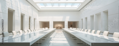 © PETR BABKIN, Obraz premium huge conference room made of white marble on a sunny day, legal AI
