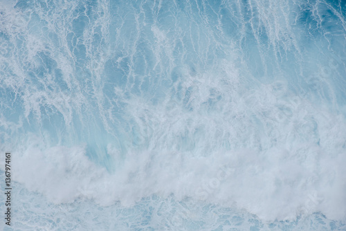 Fototapeta premium Huge crushing waves seen from above creating amazing textures.