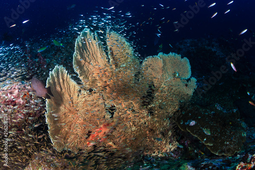 Fototapeta premium Huge, delicate underwater seafan on a tropical coral reef