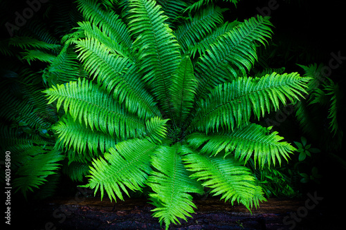 Obraz premium huge ferns close to dam and castle Kriebstein, death wood covered with fern, saxony, Germany