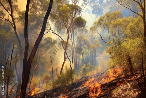 © Slepitssskaya, Fototapeta premium Huge forest fire, Generative AI