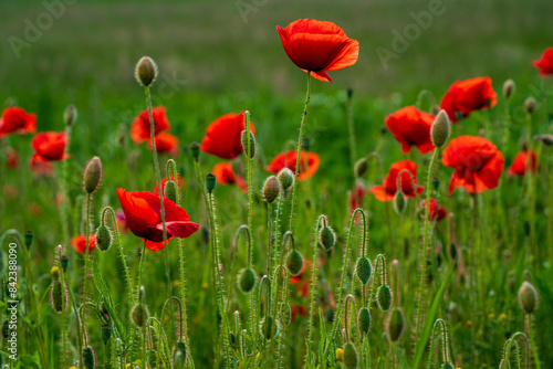 © Wolfgang Hauke, Fototapeta premium Huge red poppy field at Bavarian nature