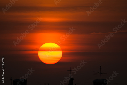 © Aliaksei Luskin, Obraz premium huge yellow sun rises