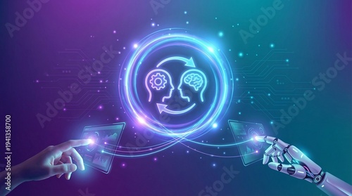 © Faysal, Obraz premium Human and AI Learning Collaboration Concept with Futuristic Artificial Intelligence Technology Interface