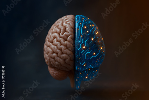 © AB-Creation's, Naklejka premium Human and Artificial Intelligence Hybrid Brain — Merging Biology with Digital Technology Concept