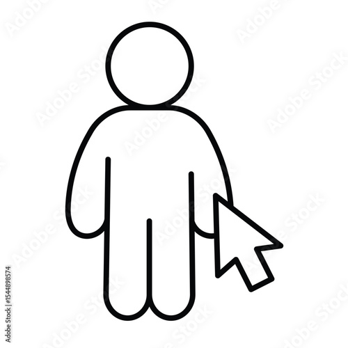 Fototapeta premium Human and mouse cursor thin line icon, remote work concept. Vector graphics. Man, person with mouse pointer sign on white background, style mobile or design.