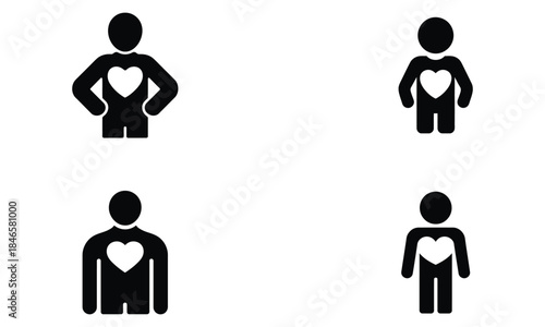 Fototapeta premium Human Body and Heart People Vector Icons Set