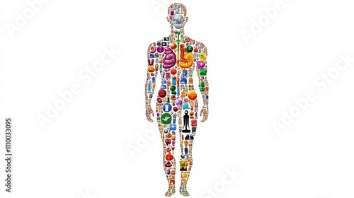 Obraz premium Human Body Composed of Various Technology and Medical Icons