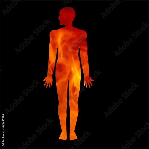 Fototapeta premium human body filled with fire concept heat body hot temperature concept summer fever body type illustration.eps