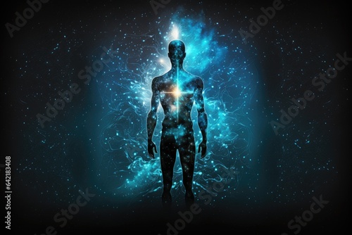 © Олег Фадеев, Fototapeta premium Human body with glowing particles and space background