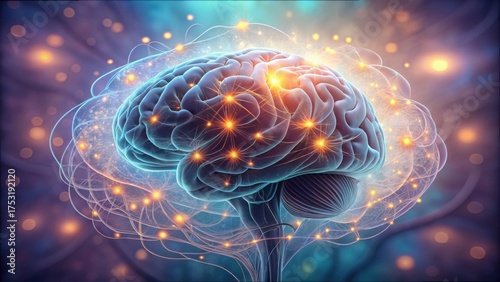 © hathairat, Fototapeta premium Human Brain Activation and Circuit Visualization in Abstract Style