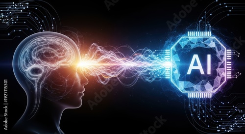 © Proma, Obraz premium Human brain connected to artificial intelligence technology.