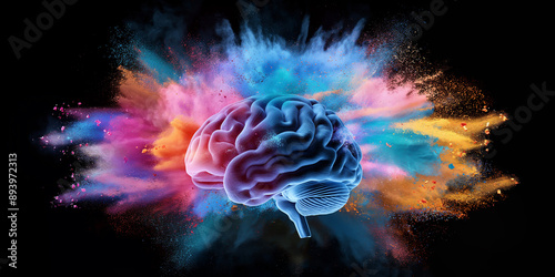 Fototapeta premium Human brain exploding with colorful powder paint
