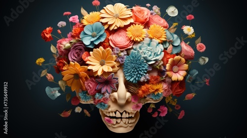 © crazyass, Fototapeta premium Human brain made of variety of colorful flowers
