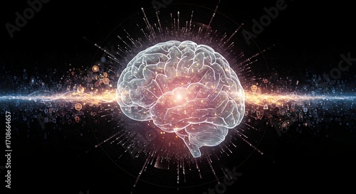 Obraz premium Human brain with digital visualization