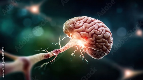 Obraz premium Human brain with glowing neurons and neural connections